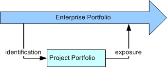Note that it is also possible that the term Service Portfolio represents the enterprise-wide service portoflio (as expressed in Concept: Service Portfolio) which has a lifecycle beyond that of the project-specific portfolio. Indeed there is a relationship between the enterprise and project portfolio as show in the figure below.